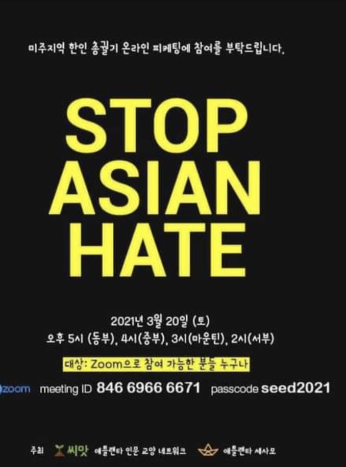 STOP ASIAN HATE 온라인 시위에 참여해주세요.