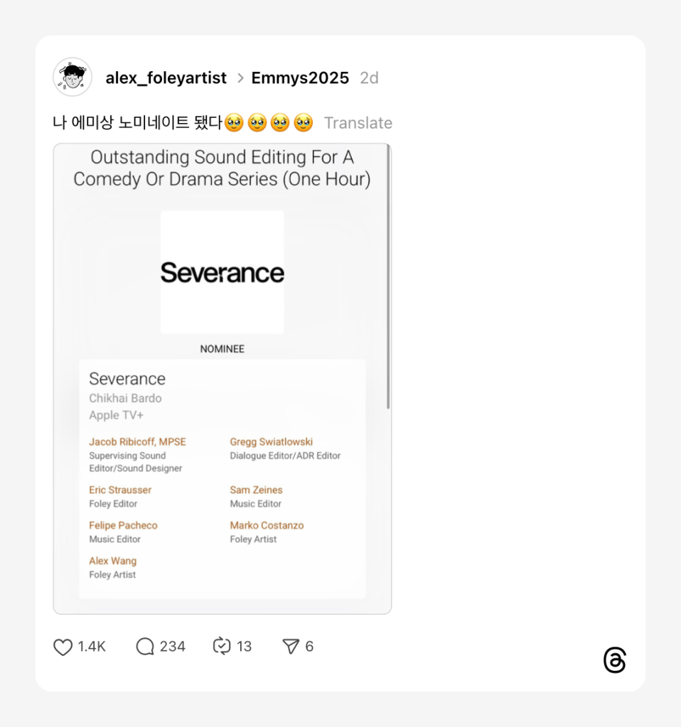 알렉스님의 최신 소식 – 드디어 알렉스님이 에미상에 노미네이트됐다고 합니다.